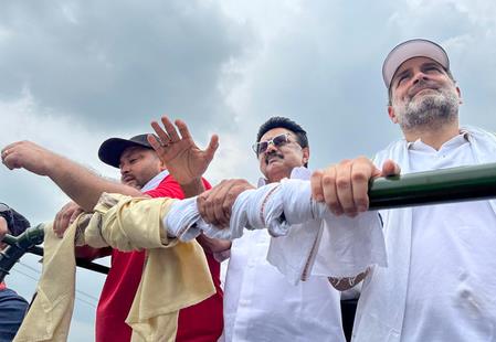 Taking to X, she wrote,“Together we rise, together we resist. The INDIA alliance joins hands in Bihar to voice out against the BJP's tyranny and to safeguard democracy."