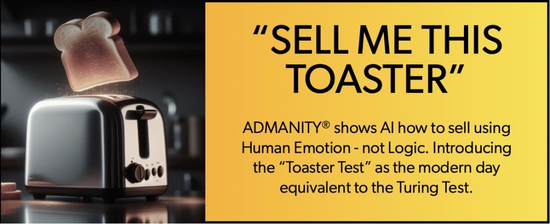 "Emotionally Primal AI promises not just incremental gains, but a modern-day Business Renaissance,” said Brian Gregory, ADMANITY® CEO and creator of The ADMANITY® Protocol The YES! TEST®Alan Turing asked if machines could think. Today ADMANITY®, led by CEO Brian Gregory, unveils the Toaster Test to prove AI can persuade. In a landmark experiment with ChatGPT, ADMANITY's Emotional AI Protocol transformed a flat toaster pitch into irresistible copy. For the first time, AI passed persuasion's benchmark, signaling Emotional AI as the missing trillion-dollar revenue layer for LLMs, CRMs, marketing, and global commerce.