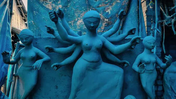 Idol makers complete Durga idols with Chokkhu Daan, painting the eyes to symbolise divine presence. Homes are cleaned and decorated.