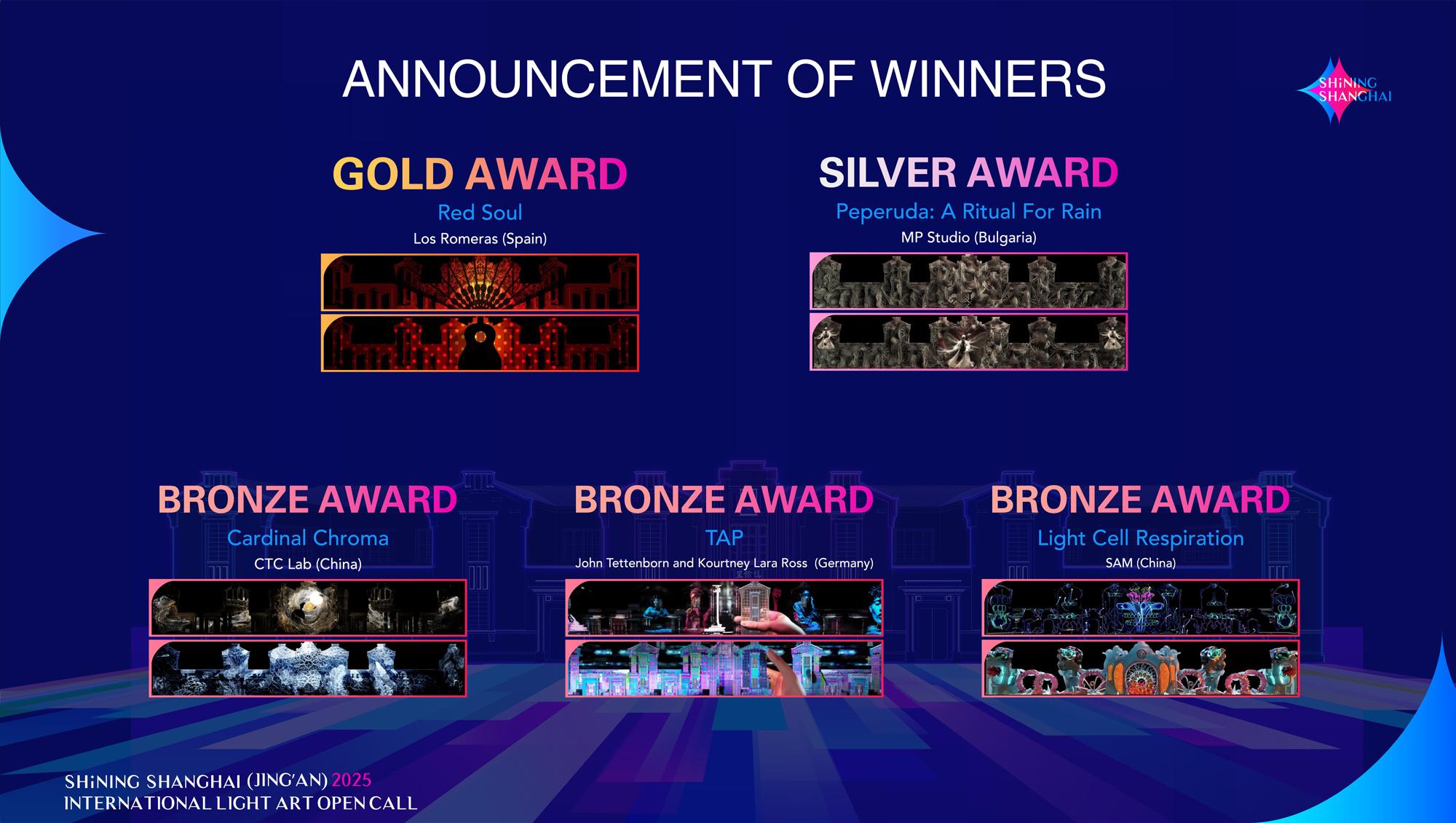 Since its successful editions in 2023 and 2024, Shining Shanghai (Jing'an) International Light Art Open Call has established itself among the world's leading mapping competitions, alongside iMapp Romania and Tokyo's 1 Minute Projection Mapping. In 2025, as a highlight of Shining Shanghai Jing'an International Light Art Exhibition, the winning works will also feature in the Jing'an sub-venue of Shanghai International Light Festival, offering a premier global stage for artists and brands alike.