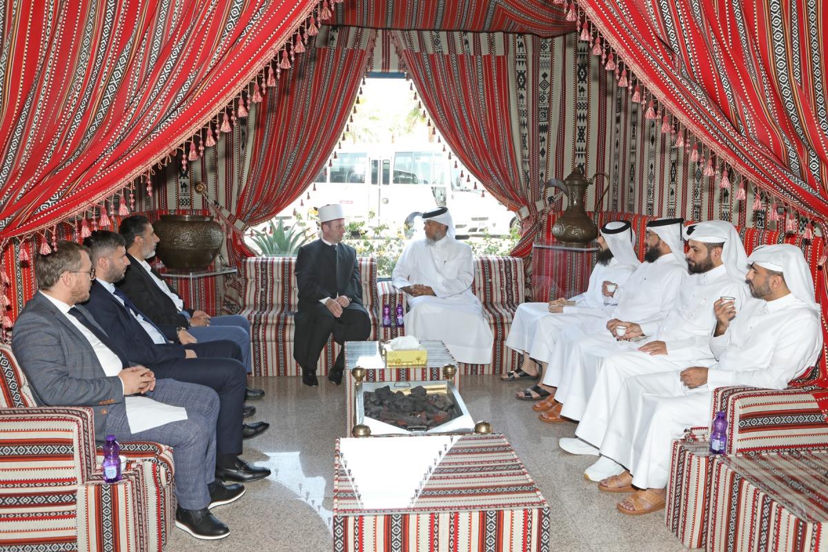 Doha, Qatar: President of the Islamic Community of the Republic of Albania His Eminence Sheikh Bujar Spahiu, accompanied by a delegation of officials, visited the Sheikh Abdulla Bin Zaid Al-Mahmoud Islamic Cultural Center, where they were welcomed by Assistant Director of the Center, Sultan bin Saad Al-Badr.