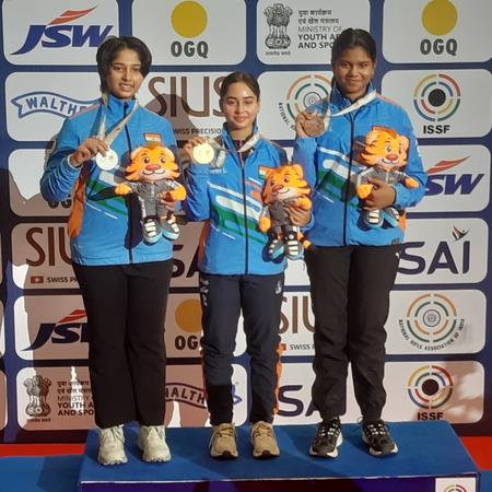 Ojasvi Thakur emerged as the champion with a score of 252.7, firing two brilliant 10.9s on her 8th and 16th shots to seal the gold medal. Teammate Hrudya Shri Kondur secured the silver with 250.2, while qualification leader Shambhavi S. Kshirsagar completed the all-India podium with 229.4.