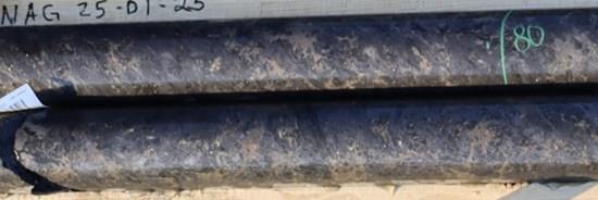 Figure 2: NAG25-01 mineralized zone with sulphide-rich graphite horizons at 64.5-71.5 metres and 73.5-82.7 metres.