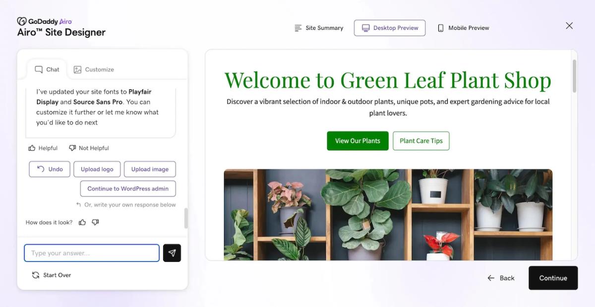 Airo Site Designer is available now for all GoDaddy Managed Hosting for WordPress plans. Simply choose“Airo Site Designer” when creating a new site to unlock the full experience.