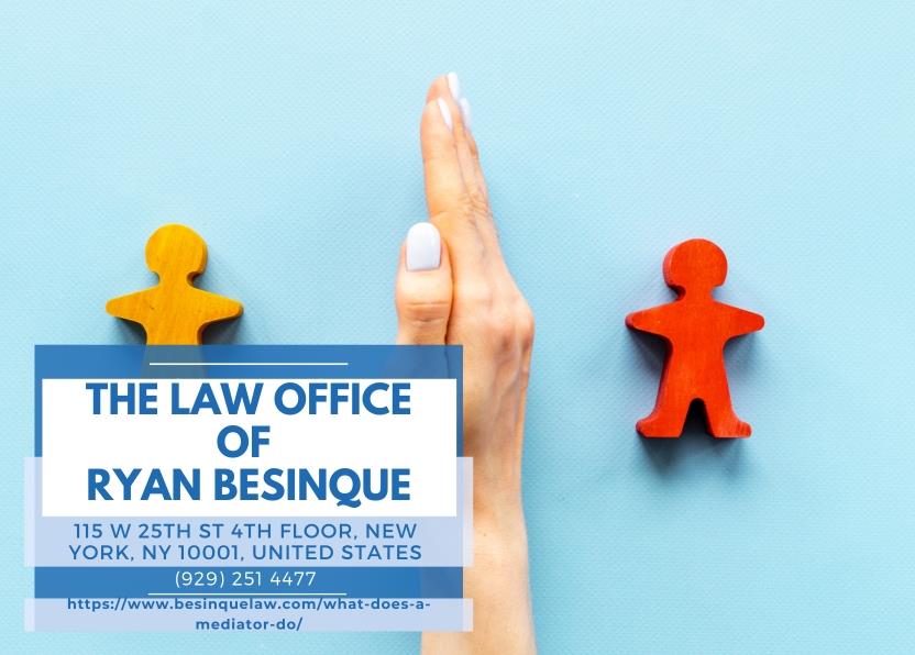 New York, NY - Ryan Besinque ( ) of The Law Office of Ryan Besinque is highlighting how mediators guide couples through structured dialogue and compromise in New York divorces. Drawing on the firm's work across Manhattan, the initiative clarifies what a mediator does, when mediation is appropriate, and how the process unfolds from the first session to a signed settlement. By placing Manhattan divorce mediation attorneys at the center of an organized, forward-looking process, the effort aims to help families reach durable agreements while conserving time, privacy, and resources.