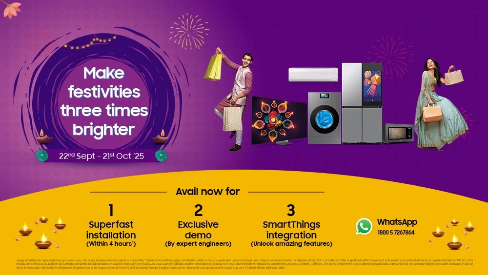 "Festivals are about celebrating togetherness, not waiting for setups. With our 4-Hour Superfast Installation & Demo Service, we are putting our customers' time and convenience first. This ensures every new purchase is ready the same day, backed by the expertise of our service teams," said Sunil Cutinha, VP, Customer Satisfaction, Samsung India.