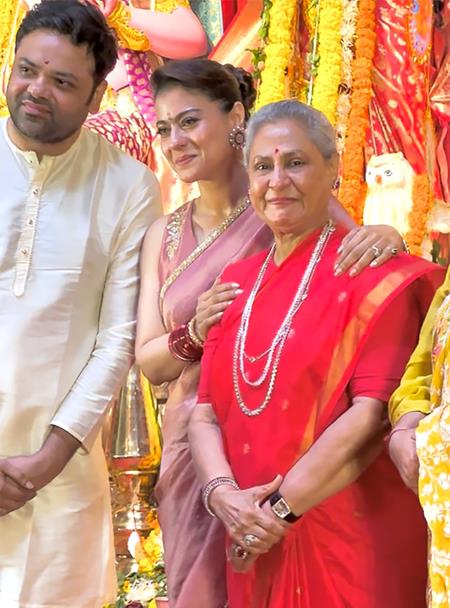 For the occasion, the actress donned a red silk saree, and attended the durga puja celebrations of the Mukerji family. The video, which has gone viral on the Internet, shows Kajol asking the paparazzi to not shout as she invited Jaya to pose with her for the cameras. Kajol remained mindful of Jaya's history with photographers and her dislike for being screamed at for photos.