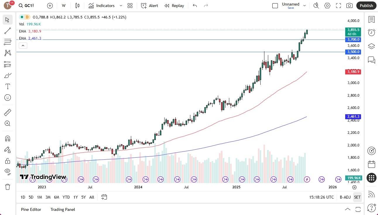 - As pretty much all of you will know by now, gold is in a major uptrend. The month of September has seen a significant rise, from the $3600 level to roughly $3850 as I write this analysis. Ultimately, gold is a market that is all but impossible to get short of at the moment. I understand that many of you will be looking to take advantage of a market that is“too expensive”, but I postulate that it's likely the month of October will see more of the same action.