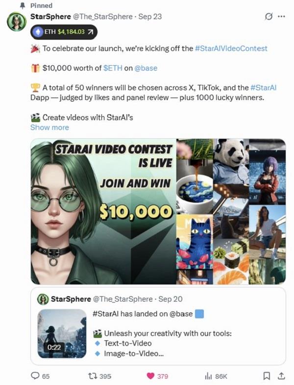To celebrate the launch, StarSphere has kicked off a Video Generation Contest with a prize pool of $10,000 :