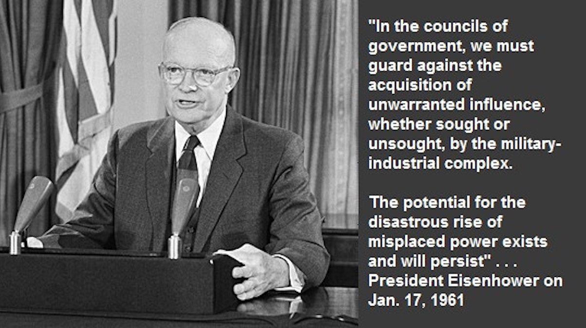 In under 10 minutes, the former five-star general who had commanded Allied forces to victory in World War II cautioned Americans against the rise of a“military-industrial complex.” He acknowledged that the nation's“arms must be mighty, ready for instant action,” but warned that“the potential for the disastrous rise of misplaced power exists and will persist.”