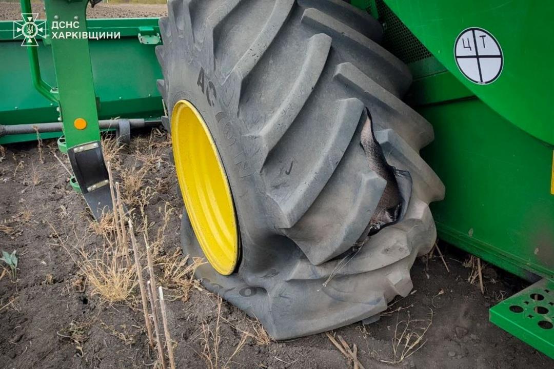 “In the Izium district, during field work, a combine harvester hit an explosive object, presumably an anti-personnel mine. As a result of the incident, the wheel of the agricultural machinery was damaged, but fortunately, no one was injured,” rescuers said.