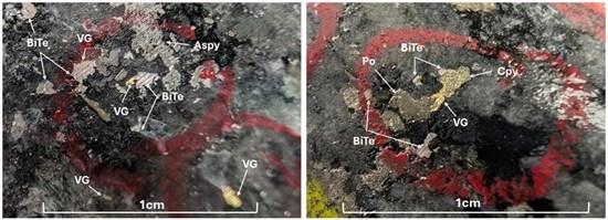 - Significant values of Copper (Cu), Silver (Ag), Bismuth (Bi), and Tellerium (Te) accompany high-grade gold at the TESS Zone; including values up to 11.7% Cu, 283 g/t Ag, 0.98% Bi, and 246 ppm Te. The gold values are strongly correlated with Bi and Te.