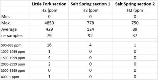 Table 1: H2 soil-gas geochemistry in Little Forks-Springhill area public roads
