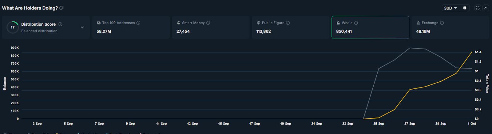 Whale wallets holding XPL, 30-day chart. Source: Nansen