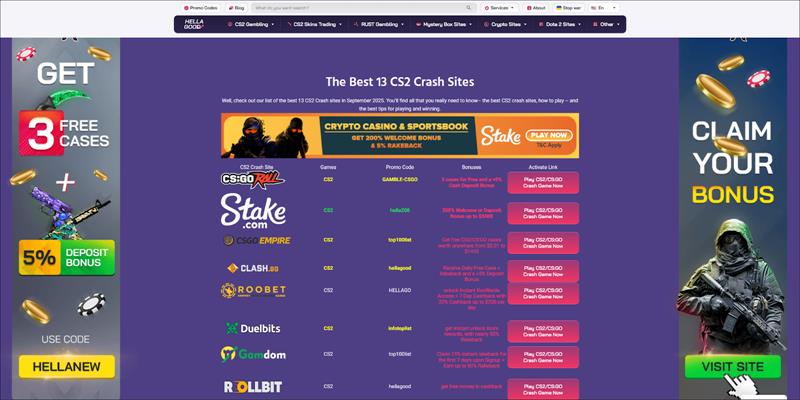Guest Contribution – CS2 crash has quickly become one of the most popular betting formats in Counter-Strike 2 gambling. The idea is simple but thrilling: a multiplier climbs higher and higher until it suddenly“crashes.” The trick is cashing out at the right time before the multiplier stops. Because of this mix of luck, timing, and strategy, CS2 crash sites attract thousands of players daily. In this guide, we'll explore the best CS2 crash sites , what makes them stand out, and provide practical tips to maximize your gameplay in 2025.