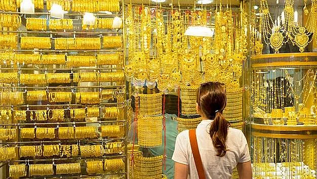 Gold prices hit a record high in Dubai on Wednesday as 24K rose to Dh468.25, 22K to Dh433.75, and 21K to Dh416 per gram. Spot gold touched a record high of $3,894.97 per ounce.