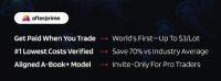 Independent verification from ForexBenchmark (2025) ranks Afterprime #1 globally for lowest all-in trading costs across 40+ FX pairs. With an invite-only model and an active Discord community, Afterprime combines Pay-to-Trade rewards, verified lowest costs, and institutional-grade execution to create a brokerage fully aligned with trader success.