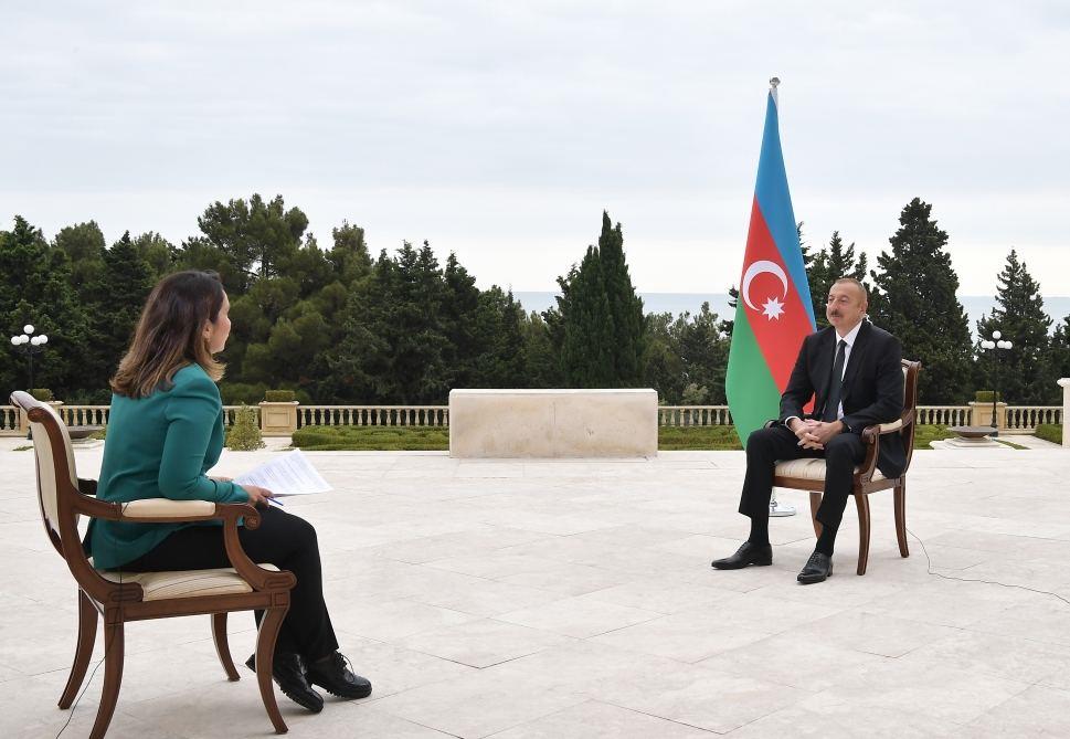 President Ilham Aliyev: Well, I don't know, what are the reasons for such kind of analysis but what we see here, we see what is happening on the ground. If we look at what Armenia did after so-called revolution, during the last two years, and what they declare, we will see that they were almost provoking us, and they were aiming at starting new war and the reason is to disrupt negotiations completely. They made several military provocations against Azerbaijan. On 12 July, they attacked our villages and our military positions far away from the region of the conflict, in the area of Tovuz, in the western part of Azerbaijan, on Armenian-Azerbaijani border. And it was absolutely difficult to understand why they did it. They attacked us with the heavy artillery. The first victims among military servicemen were Azerbaijanis, four our military servicemen were killed immediately, and one 76 year old villager. So, we had to respond, and after we responded and they suffered bitter defeat, they withdrew and started to plea for a ceasefire and then I said that we do not have any military objectives on the territory of Armenia. Therefore, as soon as we pushed them back and they already realized that it didn't work, the clashes stopped. It lasted only four days. Then, on August 23, the sabotage group which was sent by Armenian army to penetrate our territory, and to commit acts of terror was dispersed as the head of the sabotage group was detained. And he is now under investigation, he gives evidence that he was sent in order to commit terror acts against our civilians and military servicemen. It was not us who did it, it was them. And then what happened on 27 September is a logical continuation of this policy. Apart from that, if you look at what they have declared, what they have stated, it's also absolutely clear that they were provoking us. Armenian prime minister a year ago made a statement that Karabakh is Armenia and this statement makes negotiations absolutely senseless. Because one of the main item on the negotiation table is the return of the occupied territories to Azerbaijan. And if he says Karabakh is Armenia and in his understanding Karabakh is not only former Nagorno-Karabakh autonomous district but also all the occupied territories, that means that they don't want to return these territories back, that means end of negotiations.