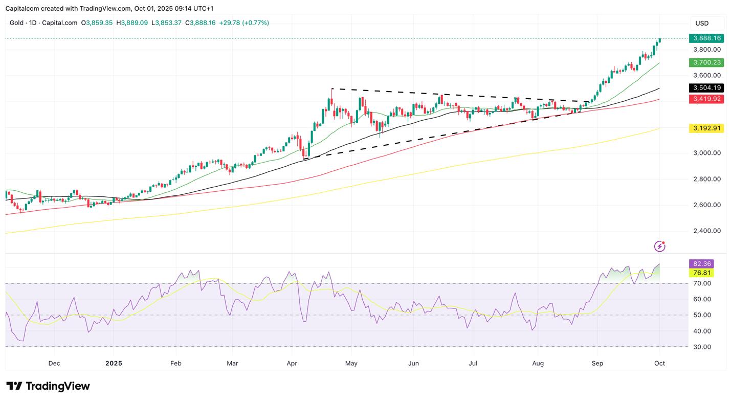 The U.S. government shutdown has now begun. Historically these episodes have had limited market impact, and that's likely to hold in the coming days, but confirmation of the stoppage adds a modest risk premium. The bigger nuance is the potential delay to Friday's nonfarm payrolls-and any subsequent official releases if the standoff drags-which deprives markets and the Fed of timely signals just as positioning is skewed toward a dovish outcome on the back of a softening labour market. Headlines about potential permanent layoffs linked to the shutdown add a low-probability, high-impact tail risk that could nudge unemployment higher and trigger a mini growth shock, keeping risk appetite subdued at the margin. This does not, on its own, strengthen the case for additional rate cuts. Futures continue to imply about a 95% chance of a 25 bp cut at month-end, and a data blackout won't reinforce that much further unless the shutdown stretches into the FOMC window. If the meeting approaches without fresh official data, the Fed will have to lean on what's already in hand-evidence of a cooler labour market alongside inflation still above target but within range. In that scenario, a cut remains the base case, but uncertainty around the path beyond October rises and so does volatility. Cross-asset, gold should remain a useful hedge against policy opacity. Its bid in a shutdown stems from three overlapping channels. First, the real-rates channel: with official data potentially blacked out, the Fed is more likely to err on the side of caution. Even if the base case for an October cut doesn't change, the perceived path of policy beyond that gets fuzzier, lowering the market's conviction in higher real yields. A lower or less certain real-yield backdrop reduces the opportunity cost of holding a non-income asset like gold. Second, the policy-uncertainty/hedge channel: the combination of delayed macro signals and noisier politics (shutdown rhetoric, layoff headlines) lifts demand for portfolio insurance. Gold remains the simplest“left-tail” hedge that doesn't rely on counterparties, so incremental hedging flows tend to support it while risk appetite is capped. Third, the USD channel: shutdowns can dent confidence in U.S. governance at the margin; any resulting softness in the dollar mechanically boosts dollar-priced bullion. Even if the dollar chops rather than trends, the first two channels are usually enough to keep a floor under gold while visibility is poor. The main caveat is that a decisively stronger dollar and/or a backup in real yields-for example if bond supply dynamics dominate-would blunt this tailwind. But as long as policy visibility is constrained and growth risks are skewed to the downside, gold's asymmetry remains attractive relative to risk assets. Gold (XAU/USD) daily chart: -p fetchpriority="high" decoding="async" class="CToWUd" src="#" width="624" height="343" data-bit="iit" /> Past performance is not a reliable indicator of future results. Going forward, with NFP at risk, attention shifts to private and survey data-ADP employment, ISM and S&P Global PMIs, and the University of Michigan sentiment-as well as Fed communications, which continue as normal (speeches, minutes, Beige Book). Treasury auctions also stay in focus as a real-time read on liquidity and demand.