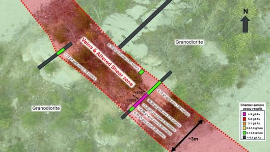 Target Area | Channel ID | | From | To | Length (m) | Grade (g/t Au) |