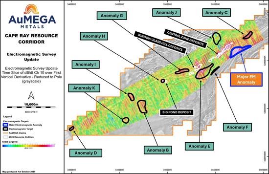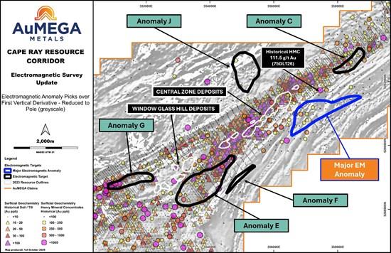 Edmonton, Alberta--(Newsfile Corp. - October 2, 2025) - AuMEGA Metals Ltd (ASX: AAM) (TSXV: AUM) (OTCQB: AUMMF) ("AuMEGA" or "the Company") is pleased to report results from its recently completed Airborne Time Domain Electromagnetic ("EM") survey at the Cape Ray, located along the Cape Ray-Valentine Shear Zone ("CRSZ") in Newfoundland and Labrador, Canada.