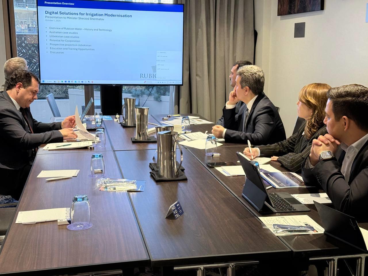 The meeting focused on opportunities for digitalizing agriculture in Uzbekistan, optimizing water use, automating irrigation systems, and implementing high-tech solutions.