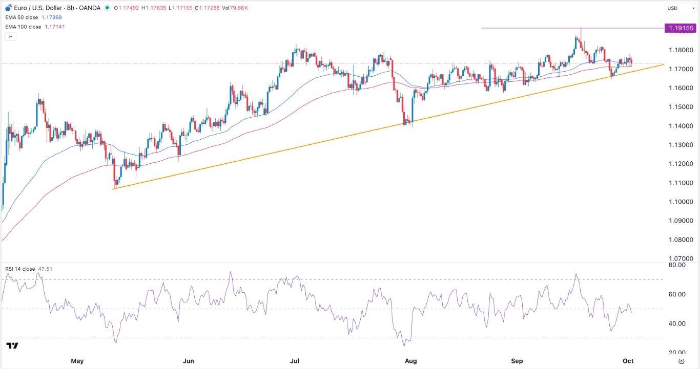 EURUSD Chart by TradingViewEUR/USD Technical AnalysisThe daily timeframe chart shows that the EUR/USD exchange pair peaked at 1.1915 in September and then pulled back to a low of 1.1657, its lowest level on September 26.It has remained above the ascending trendline that connects the lowest swings since May last year. This level has provided it with substantial support for the pair.The pair has remained above the 50-day and 100-day Exponential Moving Averages (EMA). Therefore, the pair's outlook will likely remain bullish as long as it is above the ascending trendline. A drop below that trendline will point to more downside.Ready to trade our free trading signals ? We've made a list of the best European brokers to trade with worth using.
