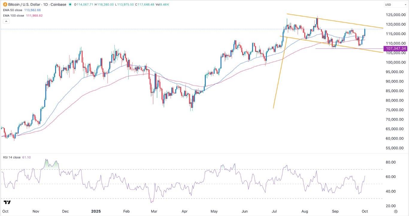 - Buy the BTC/USD pair and set a take-profit at 120,000. Add a stop-loss at 112,000. Timeline: 1-2 days.