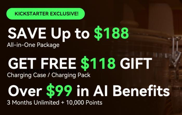 2. Backers continue to enjoy the Founder's Exclusive Bundle, including a $188 discount off future retail price, a $118 accessory gift set, three months of unlimited AI features, and now the additional AI credit.
