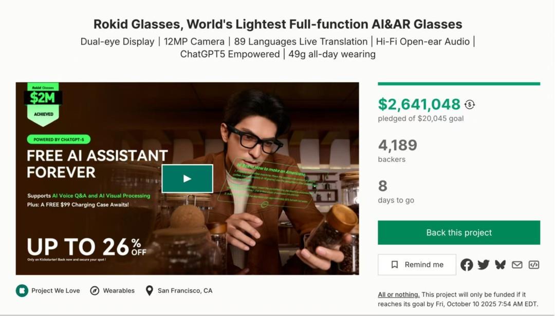 With just one week remaining on Kickstarter , Rokid invites backers worldwide to join the campaign before it ends on October 10 and become part of the founding community shaping the future of AI glasses.
