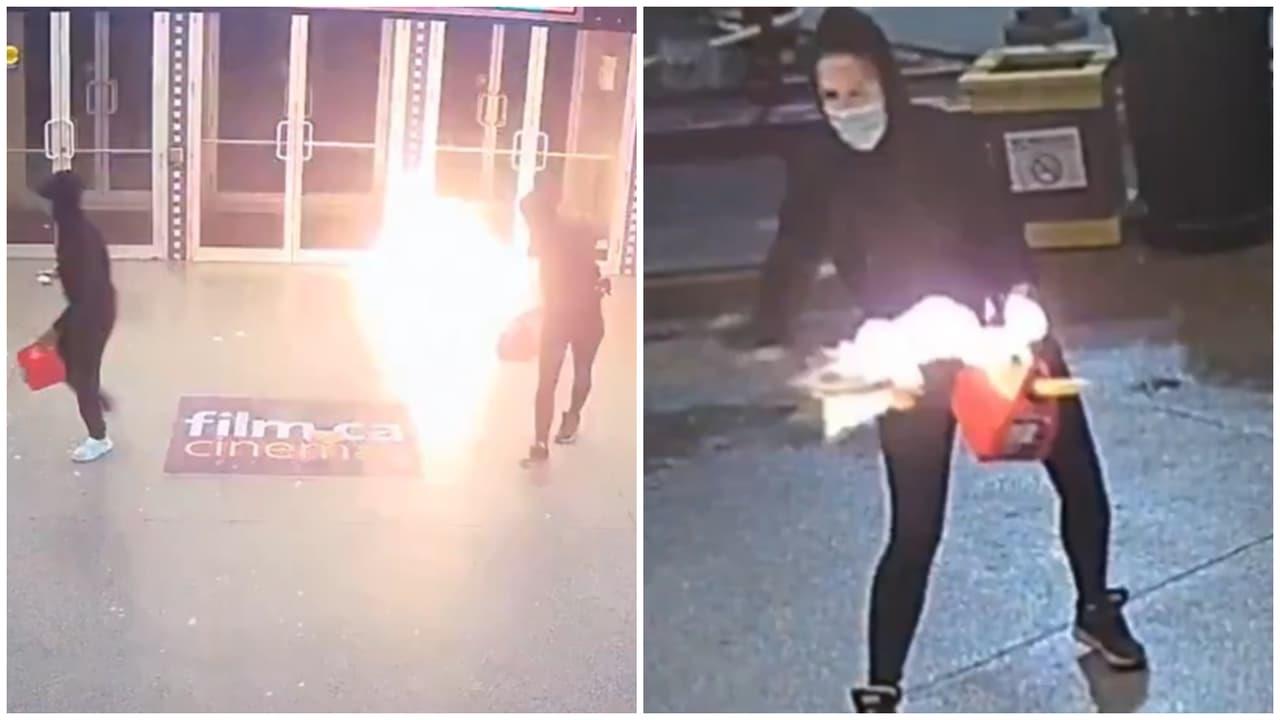 Attack on Film ca Cinema Theater Located in Oakville, Canada, 2 Young Men Poured Petrol on the Theater's Door and Set It on Fire, Both Were Wearing Masks on Their Faces and Came in an SUV Car, Firing and Setting Fire Inside the Cinema Hall, The Entire Incident Captured on CCTV twitter/0VKVhWeL5B