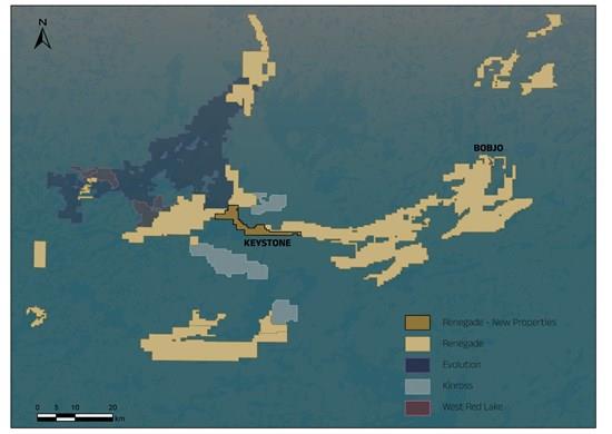 The BobJo Property will be advanced as part of the Company's Confederation Project, while the Keystone Property expands Renegade's contiguous holdings between Red Lake Main, Gullrock, and Confederation properties, further strengthening the Company's position across both the Red Lake and Confederation greenstone belts.