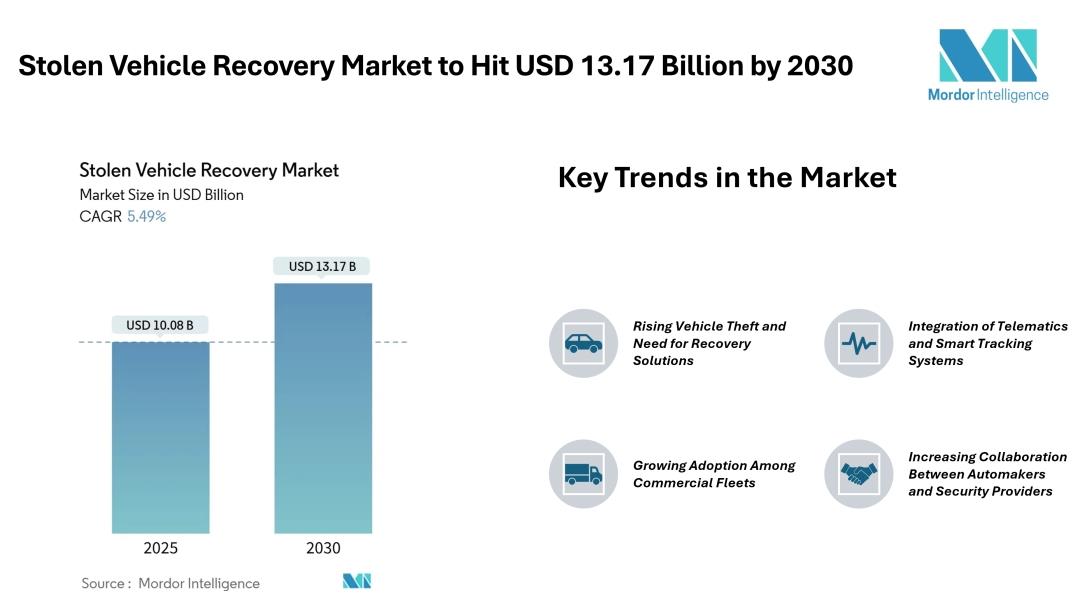 Stolen Vehicle Recovery Market To Hit USD 13.17 Billion By 2030 On Stricter Safety Mandates, Faster Theft-Response, And Data-Driven Mobility Services Mordor Intelligence
