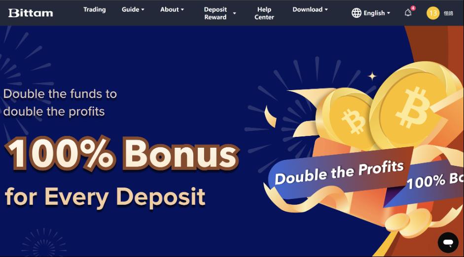 At Bittam , every deposit is instantly matched 1:1 with a 100% trading bonus .