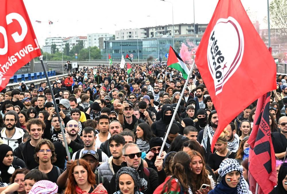 The CGIL and USB trade unions staged demonstrations in more than 100 cities. In the capital, crowds marched from the central Piazza Vittorio towards the main train station, holding union and Palestinian flags, as well as banners.