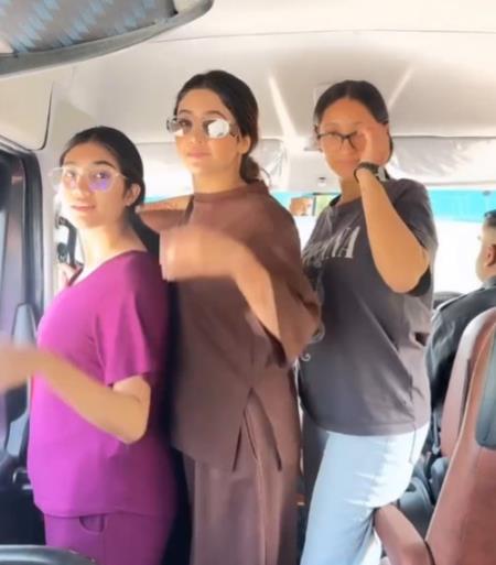Sharing the post-wedding scenes with her InstaFam, Shivangi dropped a video where the entire Joshi clan was grooving on the "Aankhein Khuli Ho Ya Ho Band" track from "Mohabbatein" in the bus.
