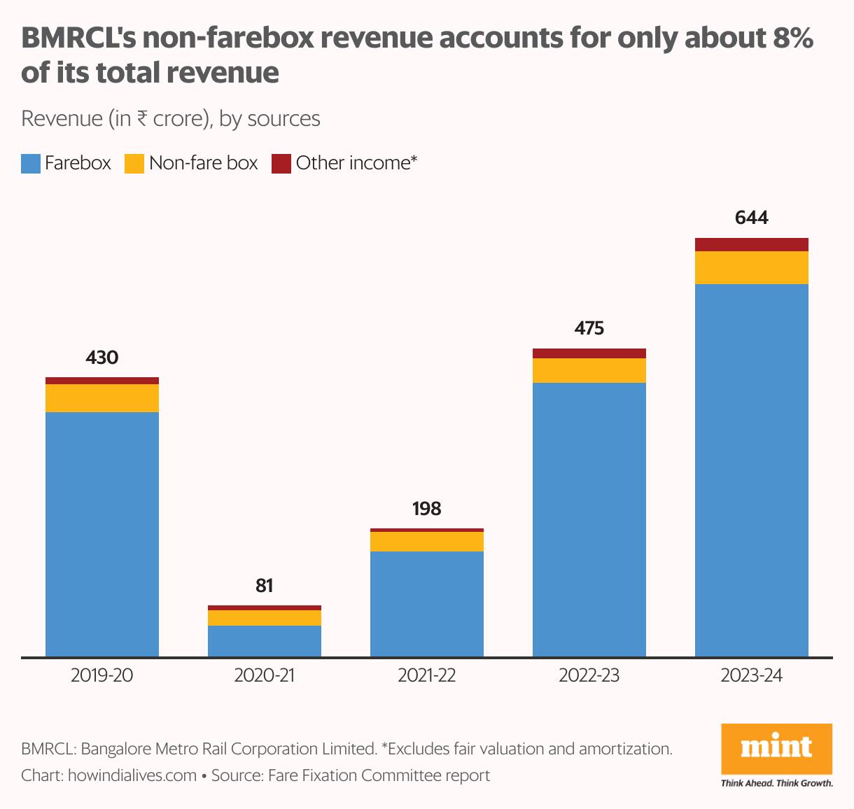 Also Read | Rapido sharpens focus on Delhi, partners ONDC for metro-ride integratioThe costs followed the metro's expansion. The network nearly doubled to 77 km in 2024 from 42 km in 2017, demanding more manpower, power and upkeep. Besides, staff salaries climbed due to pay-scale revisions, increments and allowances. Staff costs are the single largest expense for BMRCL. Ageing infrastructure also demanded more frequent maintenance.