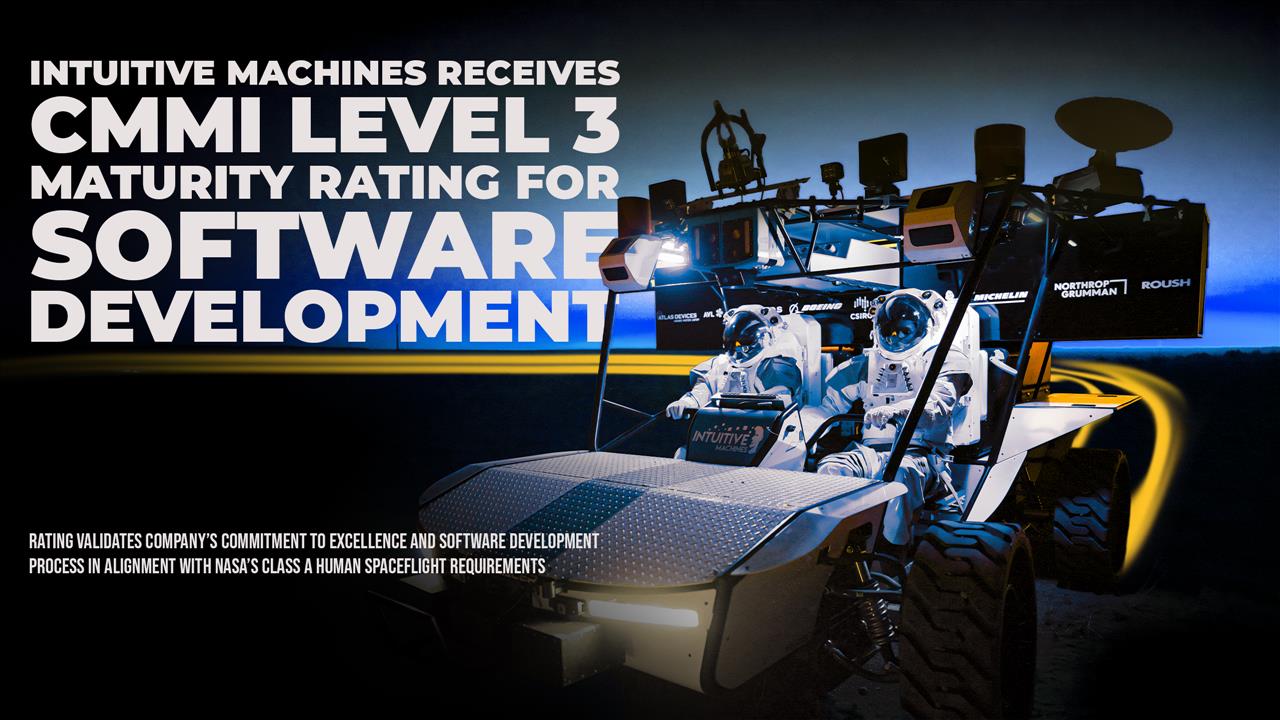 “Receiving a CMMI Level 3 rating reflects our ongoing commitment to disciplined engineering practices and continuous improvement,” said Intuitive Machines Vice President of Engineering, James Blakeslee.“This distinction demonstrates a clear link between our internal software development process initiatives and our business objectives, including the delivery of dependable, high-performance solutions like lunar terrain vehicle services.”