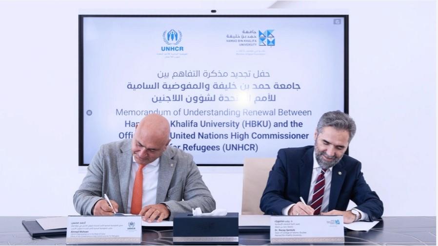 The MoU was signed in Doha by UNHCR Representative to the State of Qatar, Ahmed Mohsen and Dean of the College of Islamic Studies, Dr. Recep Şentürk representing Hamad Bin Khalifa University.