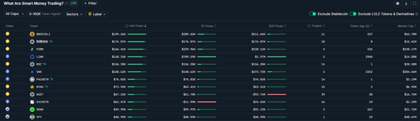 Analysis from blockchain intelligence platform Nansen shows that smart money - seasoned investors tracking blockchain transactions - have notably favored BNB-native tokens. The three largest assets purchased by these traders over the past 24 hours were all tokens native to BNB Chain, with substantial inflows indicating growing institutional interest.