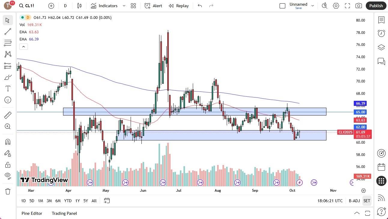 - The crude oil market has fallen during the early hours on the Tuesday session, only to turn around and show signs of life. It's worth noting that we are sitting just below the $62 level, which is an area that's been important multiple times. In fact, the $62 level is the top of an overall support range that drops down to the $60 level. We did touch that $60 level, but now it looks like we are trying to reiterate that important. If we can break out to the upside, that would be an even more bullish sign, but I think over the next couple of sessions, we may see some problems.