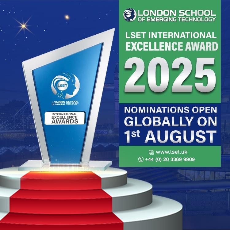 London - 8 October, 2025 - Nominations are now being accepted for the 2025 LSET International Excellence Awards , organised by the London School of Emerging Technology (LSET). The awards welcome participation from individuals, students, and organisations worldwide, recognising contributions in business, technology, innovation, and education.