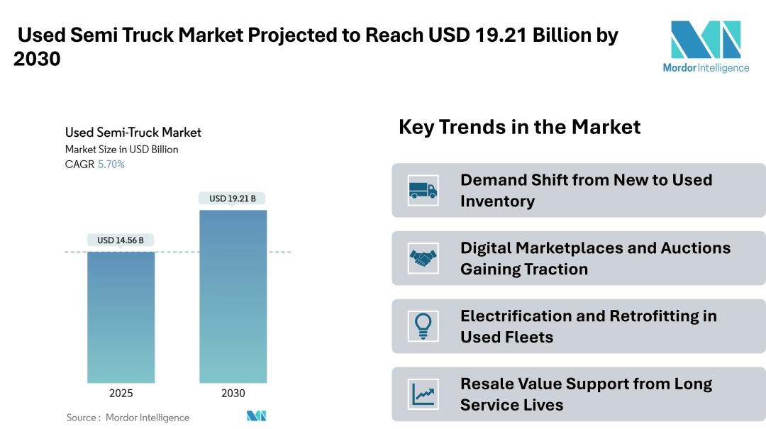 Used Semi Truck Market Projected To Reach USD 19.21 Billion By 2030, Driven By Digital Channels And Electrification Trends-Mordor Intelligence