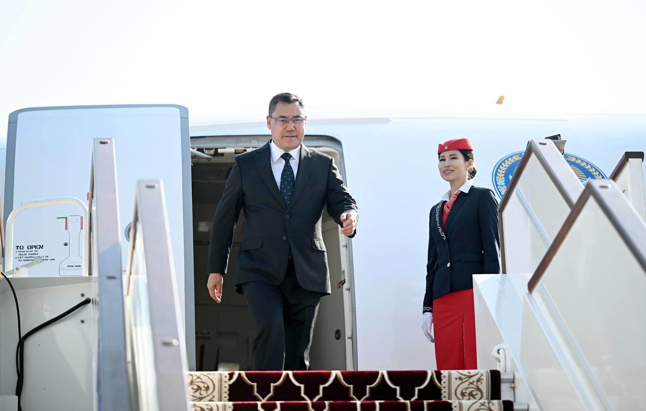 Upon landing at Dushanbe International Airport, President Zhaparov was welcomed with a red carpet, a guard of honor, and the display of CIS member states' flags. He was greeted by Prime Minister Kokhir Rasulzoda and other senior officials.