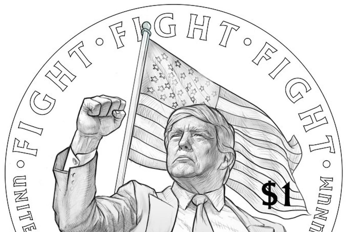 The proposed coin depicts Trump in profile on one side (the obverse). On the other side (the reverse) the president raises his fist in defiance, accompanied by the words“fight, fight, fight .”