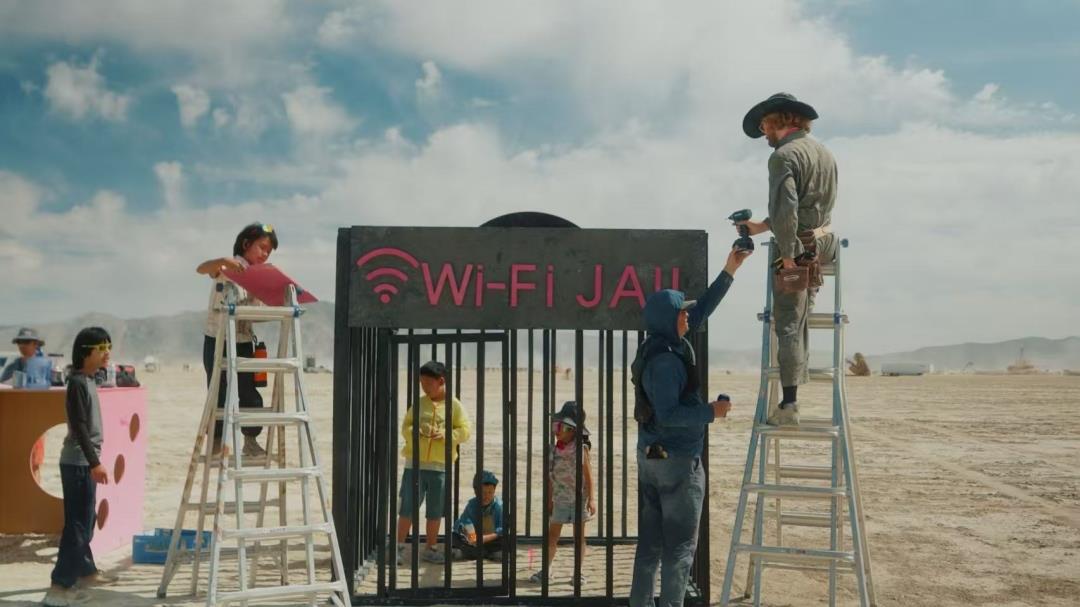 Miao He, born in a small village in rural China, graduated from the China Academy of Art and founded the Mona Art Foundation, a nonprofit supporting marginalized artists and exploring the power of art in mental health. This year, the foundation supported multiple art pieces at Burning Man, including WiFi Jail, an interactive structure designed by children artists aged 6 to 13 to resemble a prison cell. By placing participants inside the jail to access free WiFi, while others watched from outside, the project forced a confrontation with digital dependency.“We give away our attention too easily,” says lead artist Weisen Wang,“No one looks up anymore.” WiFi Jail reminded participants that real freedom might lie not in constant connection, but in choosing when to unplug and reconnect with each other, face-to-face.