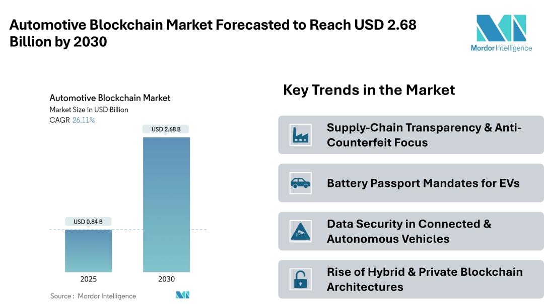 Automotive Blockchain Market Forecasted To Reach USD 2.68 Billion By 2030, Driven By Supply-Chain Transparency And Battery Passport Trends Mordor Intelligence