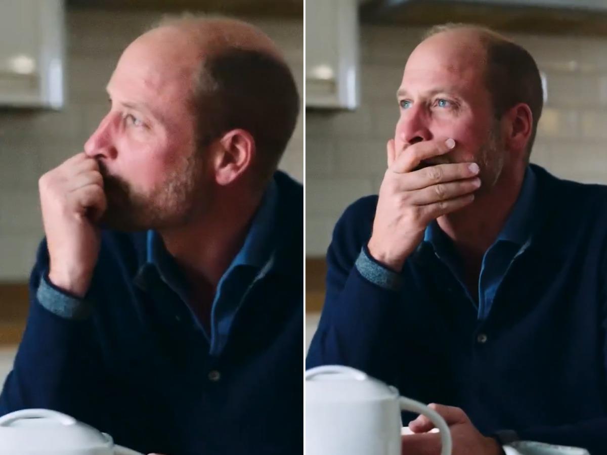 William, whose mother Princess Diana died in a car accident in Paris in 1997 when he was 15 years old, looked up and put his hand over his mouth.