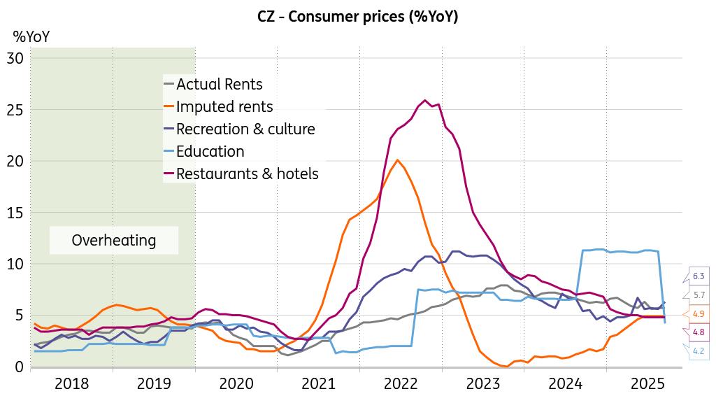 Domestic price pressures subject to continued expansionOverall, we see the persistently elevated price dynamics in services as a continued issue for the guardians of price stability, especially as this could work its way through to households' inflation expectations and wage demands when looking ahead. This may become a serious concern once the economy enters a phase of mature expansion and begins to operate above its productive sweet spot - a scenario anticipated for the Czech economy by mid-next year.