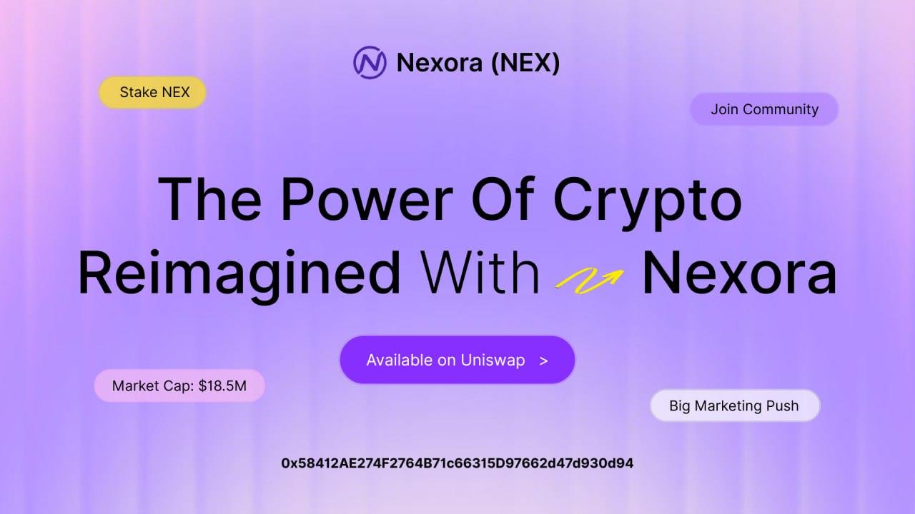 Nexora (NEX) is a secure, Ethereum-based ERC-20 token dedicated to building a transparent, community-driven DeFi ecosystem. With no VC or pre-mine, 100% locked liquidity, and audited contracts, NEX sets new standards for trust and fairness in crypto. Through staking pools, long-term roadmap development, and multichain expansion, Nexora empowers global users with scalable, borderless solutions.